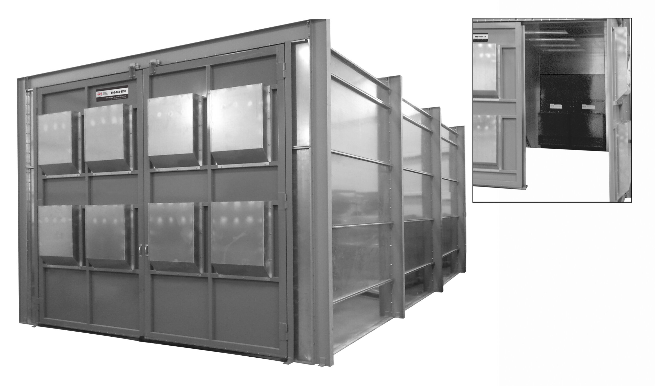 - 11-gauge galvanized steel panels with structural steel reinforcement